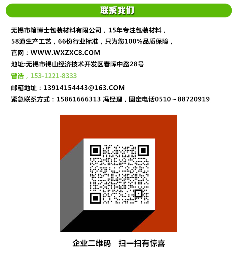 無錫箱博士包裝材料有限公司版權(quán)所有備案號(hào): 蘇ICP備13058823號(hào)-5 地址:無錫市錫山經(jīng)濟(jì)技術(shù)開發(fā)區(qū)春暉中路28號(hào) 聯(lián)系電話:180-6150-6953郵箱:13914154443@163.com 建站及優(yōu)化由無錫網(wǎng)站建設(shè)提供技術(shù)支持